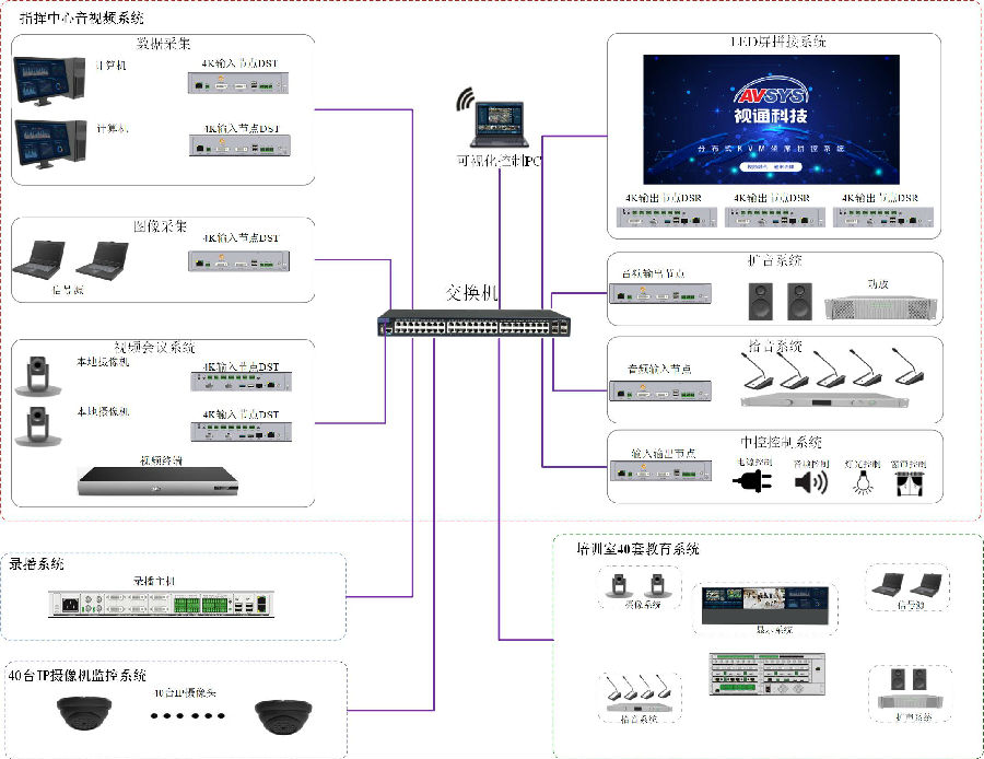 本次为满足河北某部队指挥中心应用,beats365科技采用自主研发生产的4K分布式ADS、AVSRTM六合一的高清录播一体机和可视化管控平台,实现指挥中心系统的统一管控、音视频图像调度、会议通讯互动交流和录播等应用。