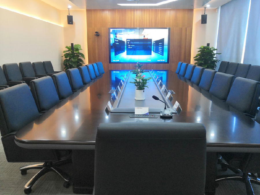 5、会议室融合:两个会议室之间通过多媒体综合一体机进行实时音视频互动,使2会议室融合为一体,实时扩展会议覆盖范围